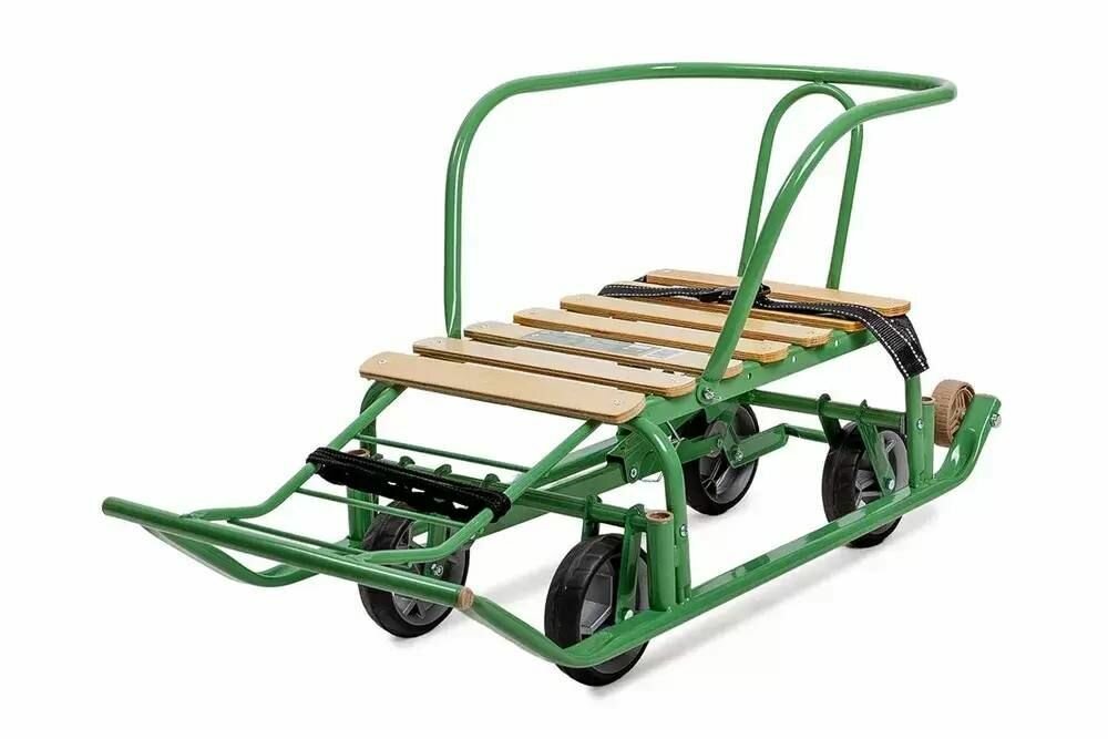 Санки Тимка 5, Т5У/ОЛ, универальные, переставная ручка, ремень безопасности, колеса на полозьях, оливковые, Nika