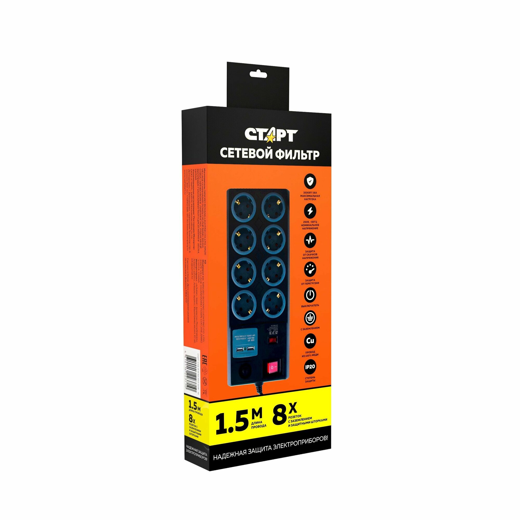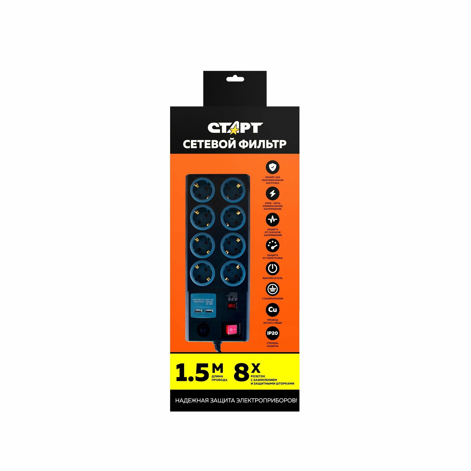 Купить Сетевой фильтр старт С/УД-Ф SP 8x1 ZDVT 2USB(8р/1.5и/2xUSB)