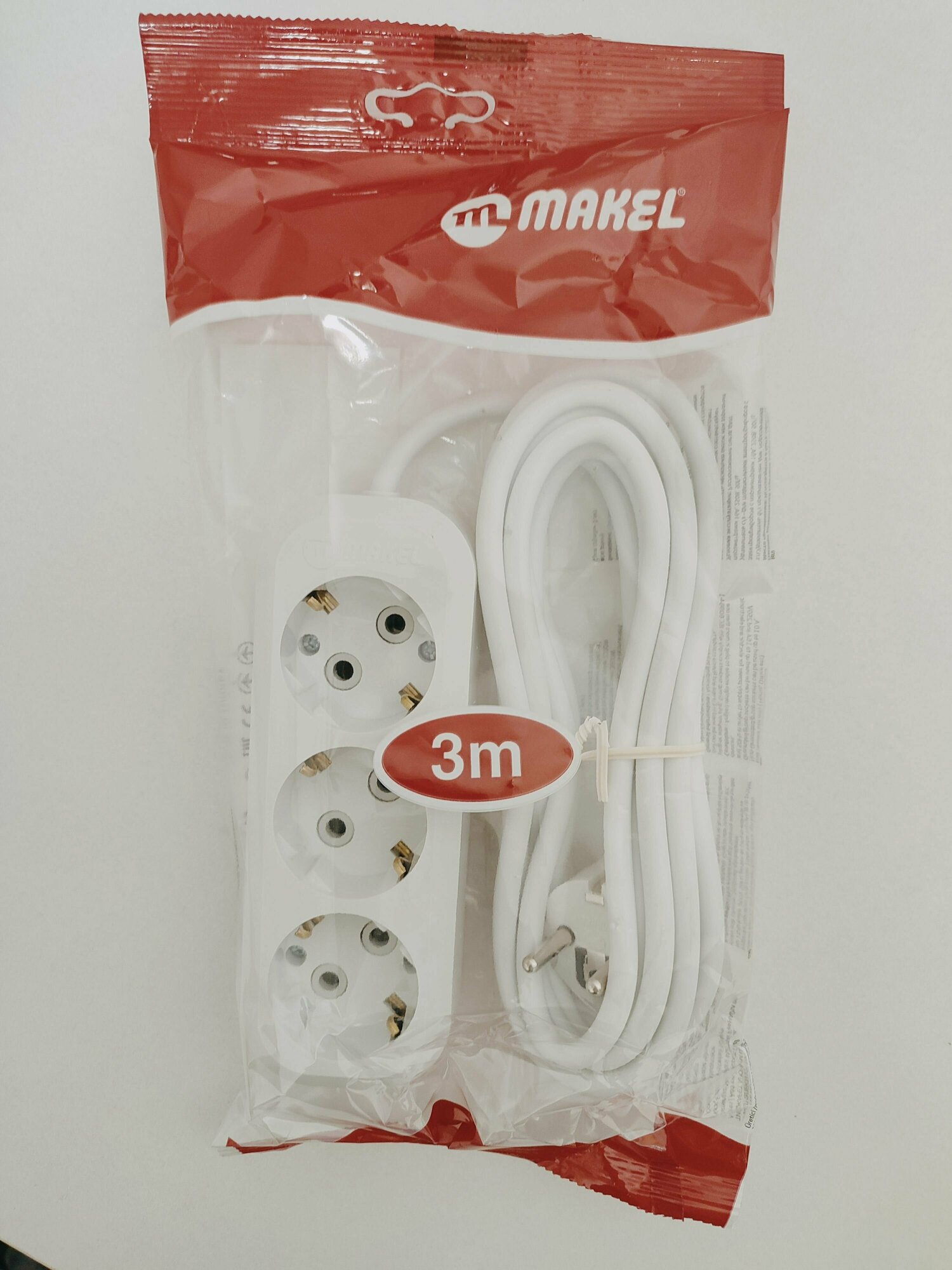 Удлинитель Makel сетевой плоский 3 гнезда на 3м с заземлением