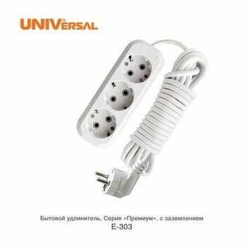 Удлинитель UNIVersal Премиум Е-303 (9631976), 3 розетки, с/з, 16А / 3500 Вт 3 2 м 1 м² белый