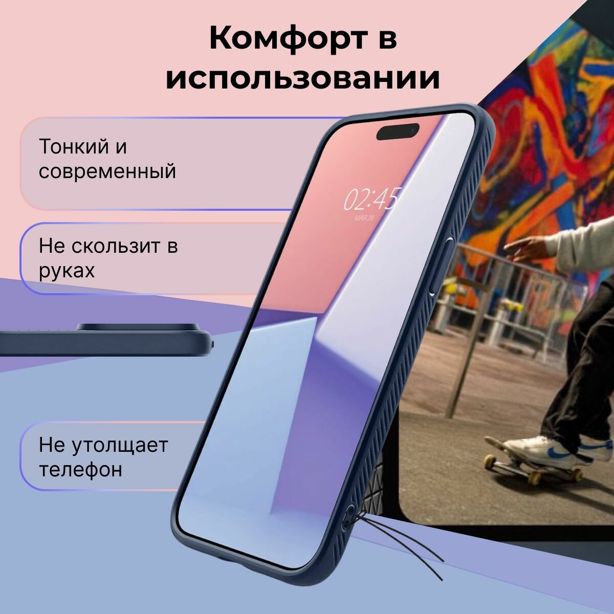 СохранитьЧехол Spigen для iPhone 15 Pro Max / Айфон 15 Про Макс Liquid Air синий ACS06563 интересное: