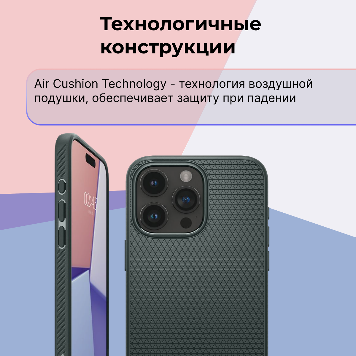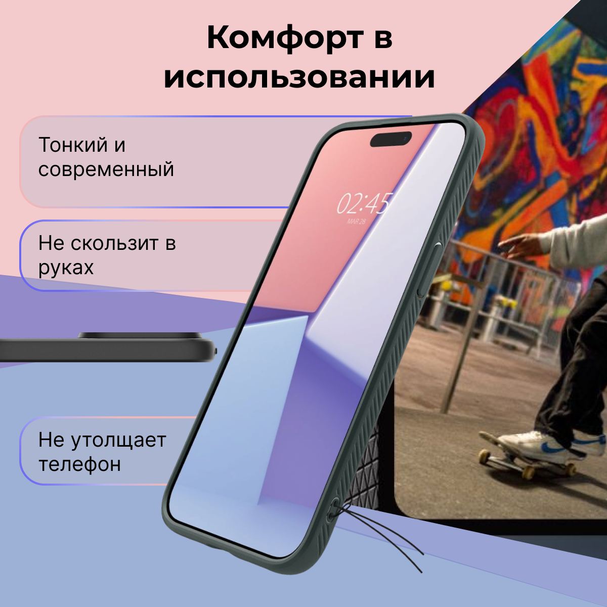 СохранитьЗащитный чехол Spigen Liquid Air для iPhone 15 Pro Max / Айфон 15 Про Макс зеленый интересное: