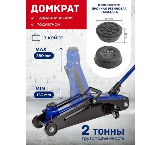 Домкрат подкатной 2т, в кейсе, 130-320 мм