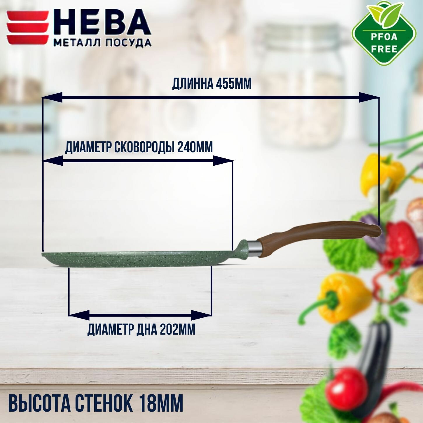 Сковорода НЕВА МЕТАЛЛ ПОСУДА Готовить легко, диаметр 22 см