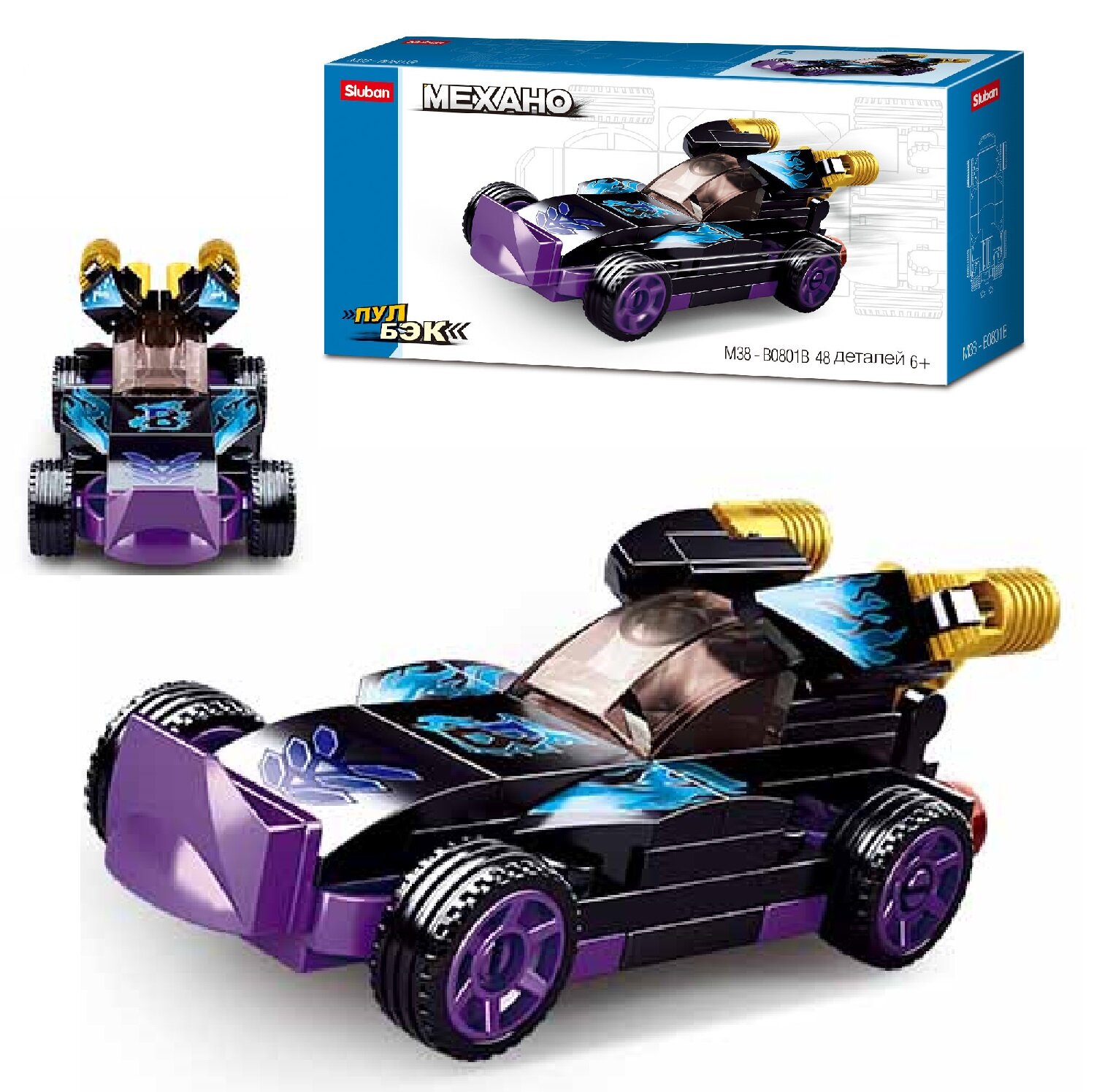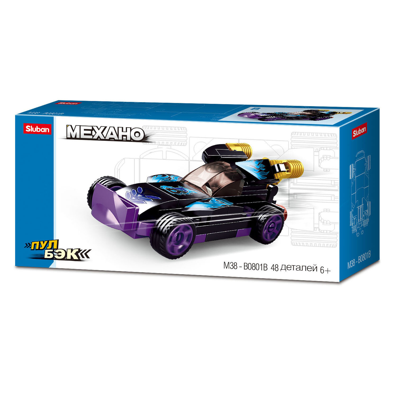 Конструктор пластиковый детский "Машина Дрифт" с функцией "Пул-бэк" SLUBAN M38-B0801B "Механо" (48 деталей)