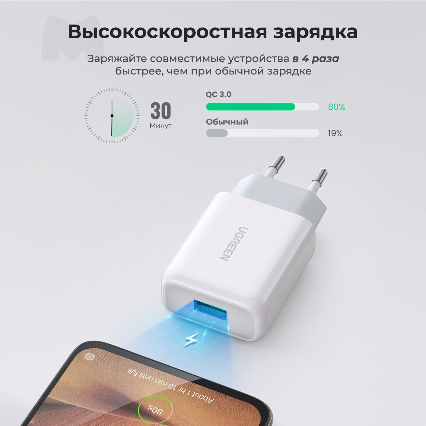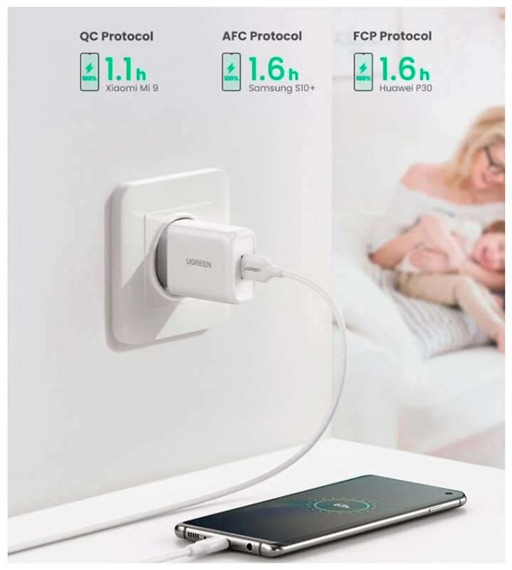 СохранитьСетевое зарядное устройство Ugreen CD122 (10133) QC 18 Вт Fast Charger EU, белый интересное: