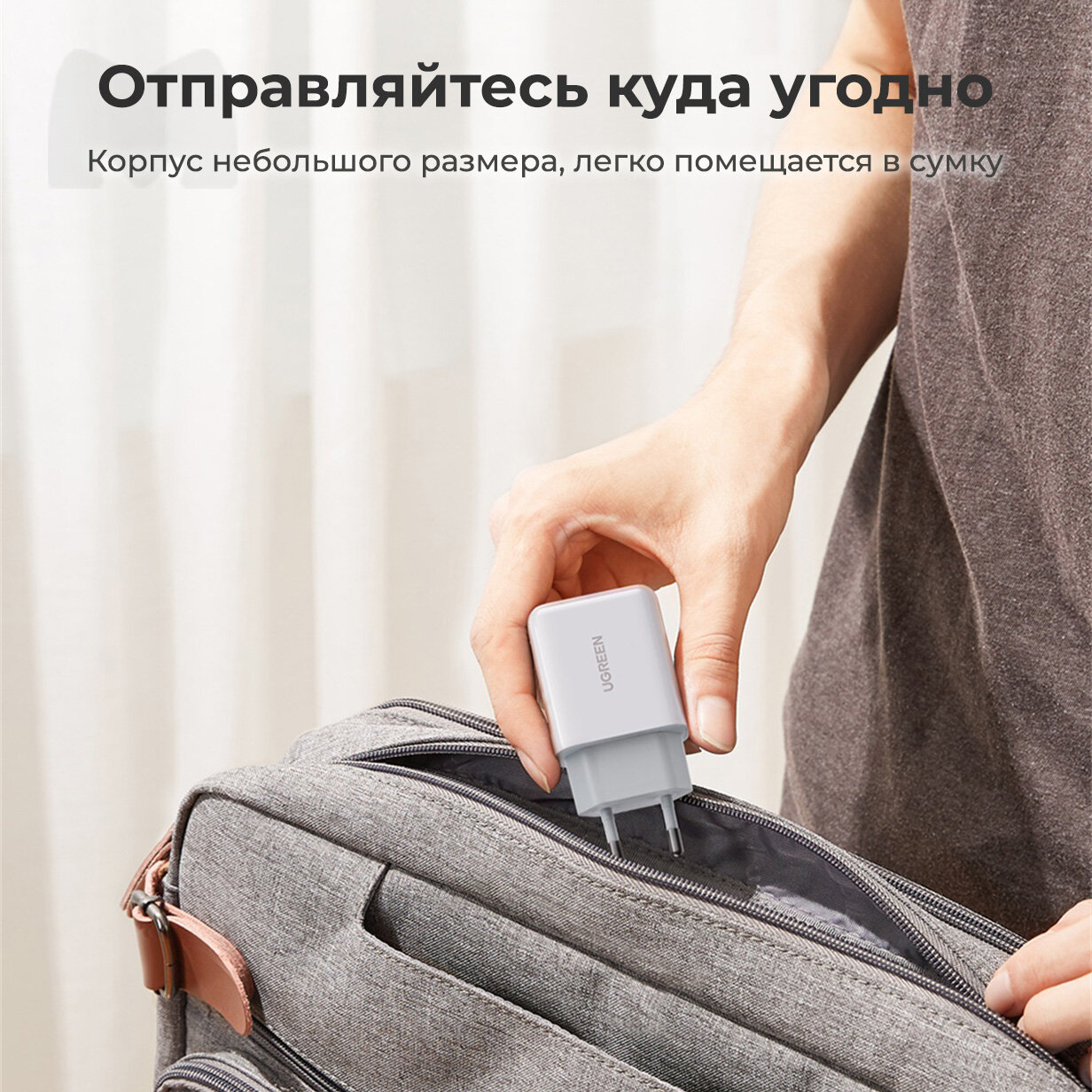 Зарядное устройство UGREEN CD241 (10220) Mini USB-C 20W PD Fast Charger, мощность 20 Вт, без кабеля. Цвет: белый