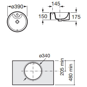 Раковина Roca Terra накладная, 390x390мм, с отверстием для смесителя, белая 32722T000