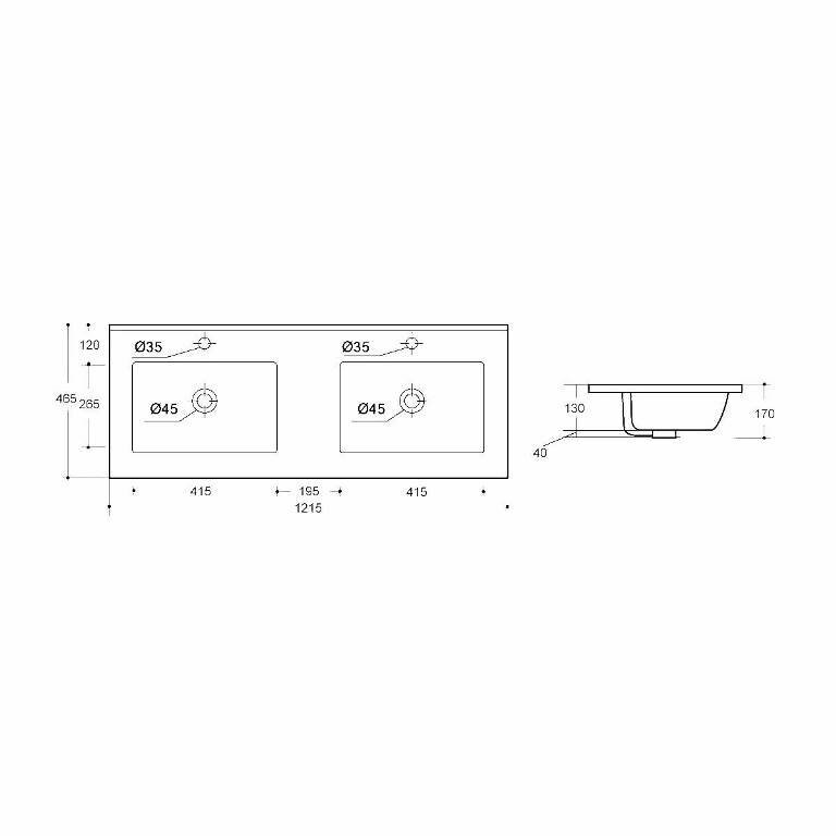 Раковина Vincea VBS-13120D керамическая на две чаши 121см, цвет белый