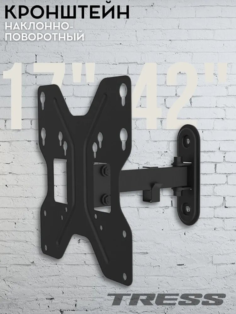 Кронштейн для телевизора на стену наклонно-поворотный диагональ 17"-42" TRESS WM 25221M,черный
