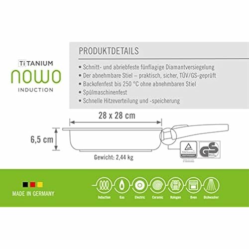 СохранитьЛитая сковорода-гриль Woll Nowo Titanium квадратная - индукционная - с желобками, 28x28 см, высота 6,5 см, со съемной ручкой - подходит для всех типов плит, литой алюминий, антипригарное покрытие интересное: