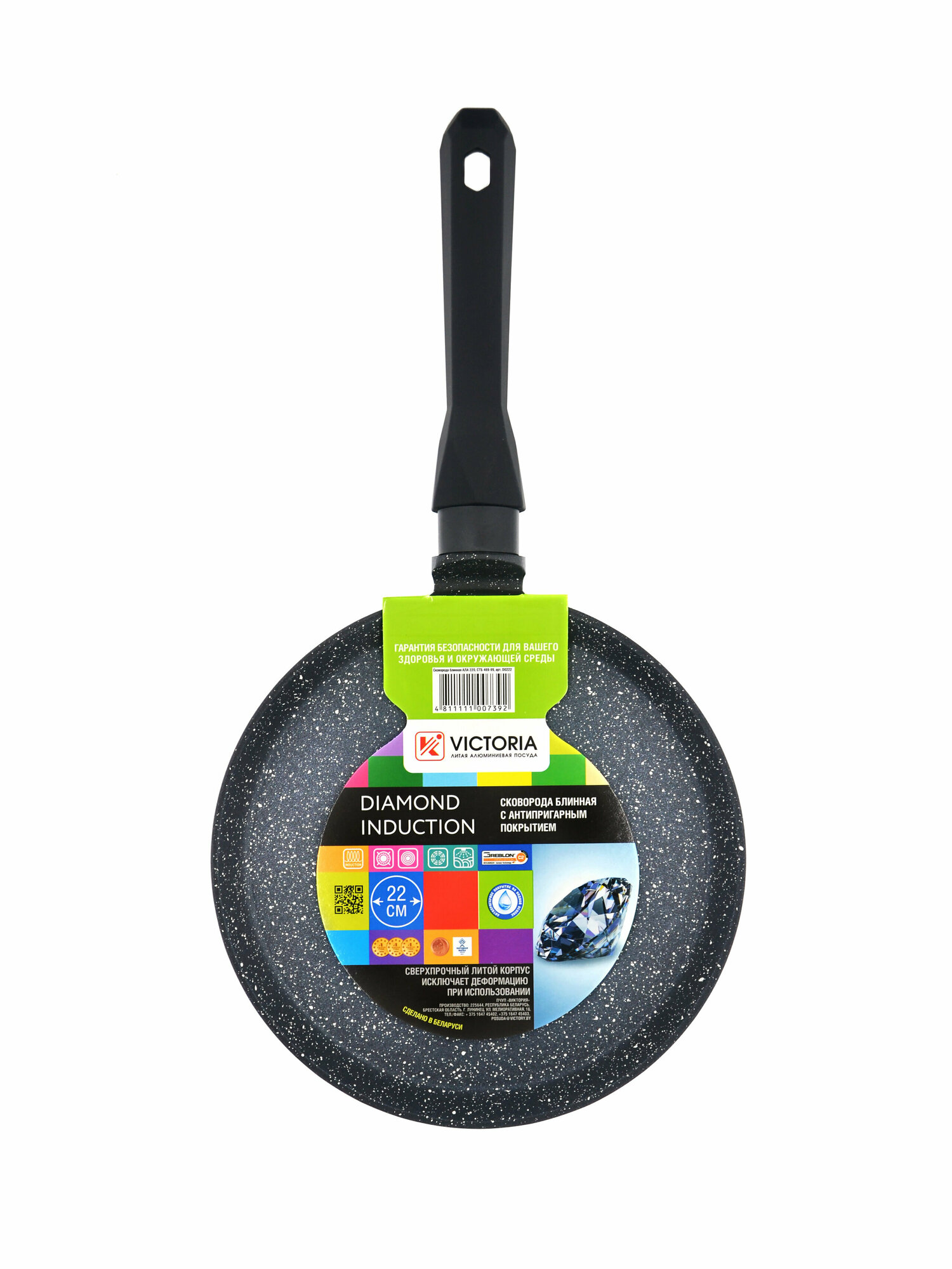 Сковорода блинная VICTORIA "DIAMOND INDUCTION", 22 см. черная