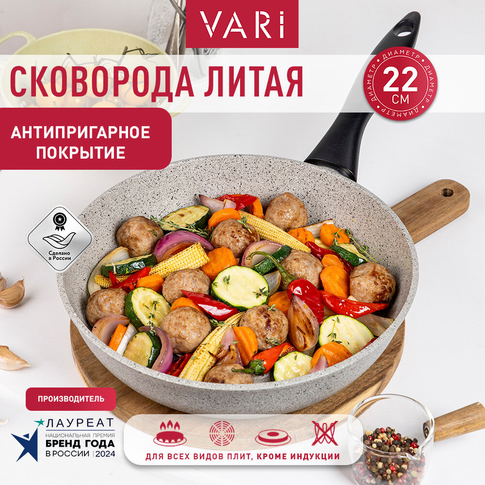 VARI Сковорода литая индукционная "Life" с антипригарным покрытием, D22см LM031122