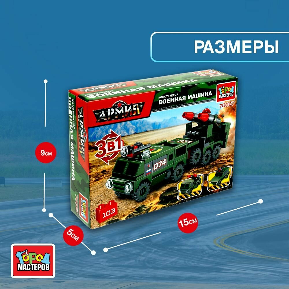 Купить Детский конструктор для мальчиков военная машина 103 детали / Игровой набор 3 в 1 Город Мастеров