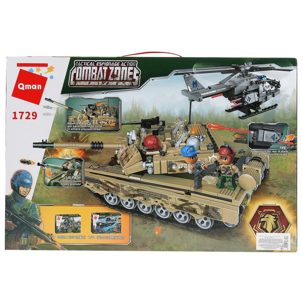 Конструктор пластиковый серии Боевая зона "Тяжелый бронированный танк" 712 деталей Qman 1729 интересное: