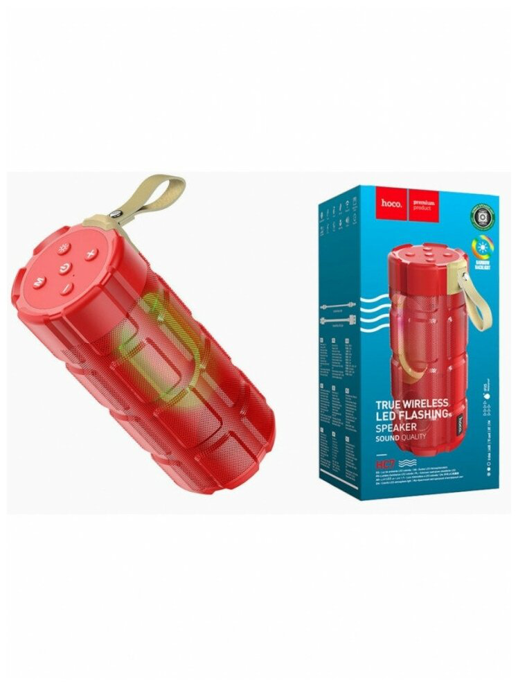 Портативная колонка HOCO HC7, красный, LED подсветка