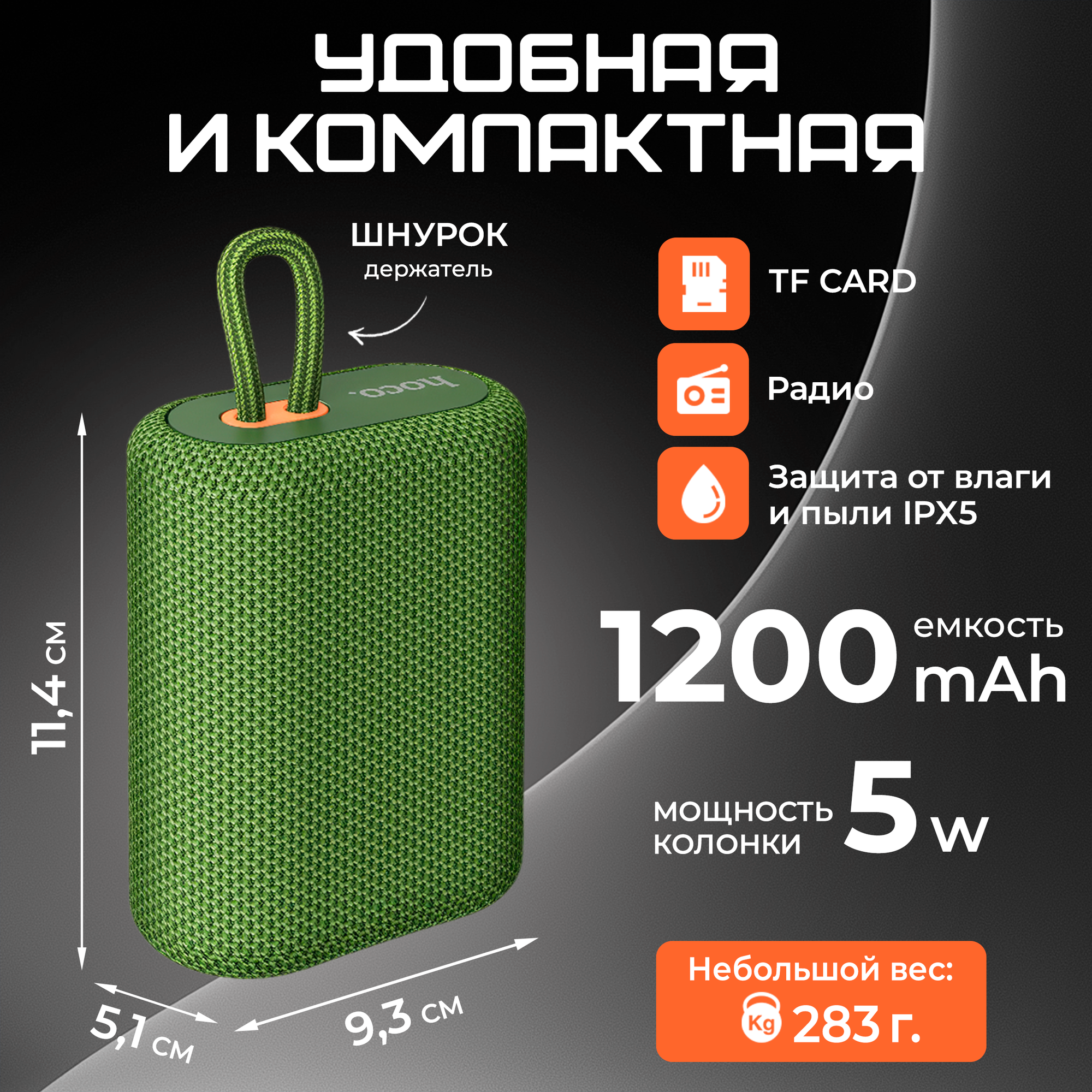 Портативная колонка hoco 6931474756008 BS47, зеленый, ткань