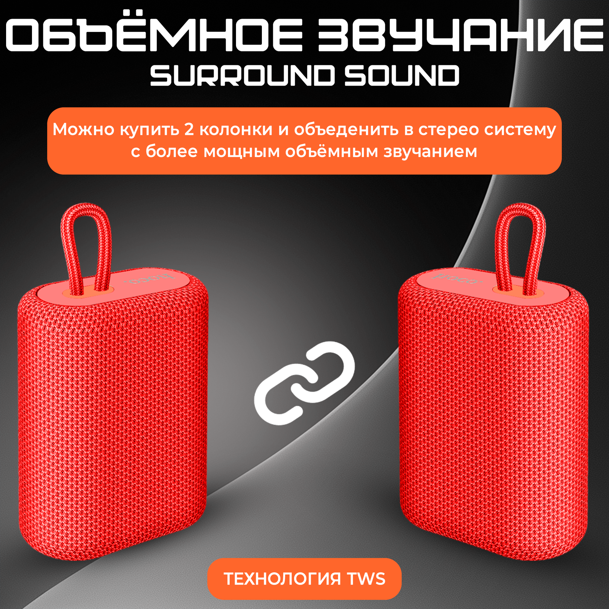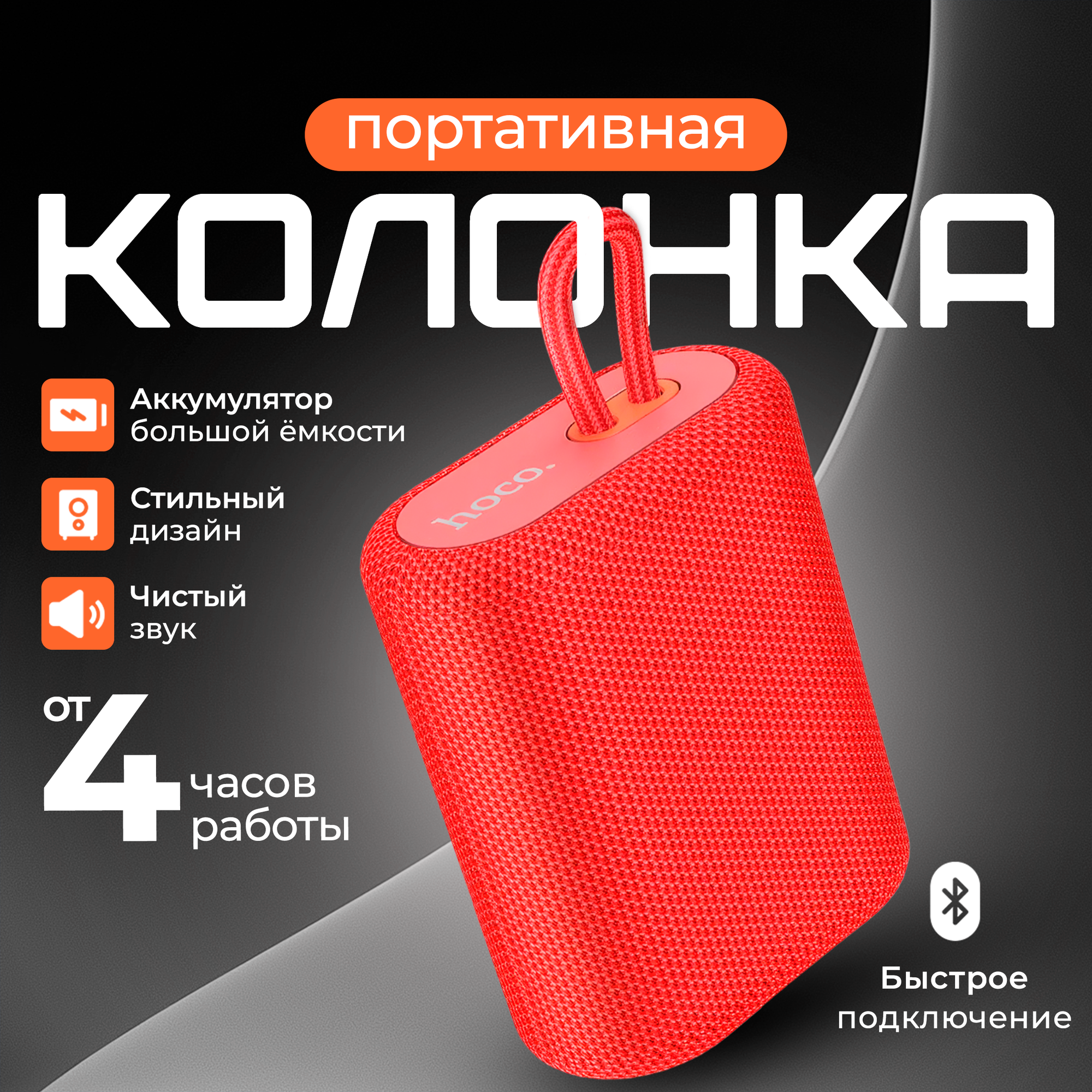 Портативная колонка hoco 6931474755988 BS47, красный, ткань