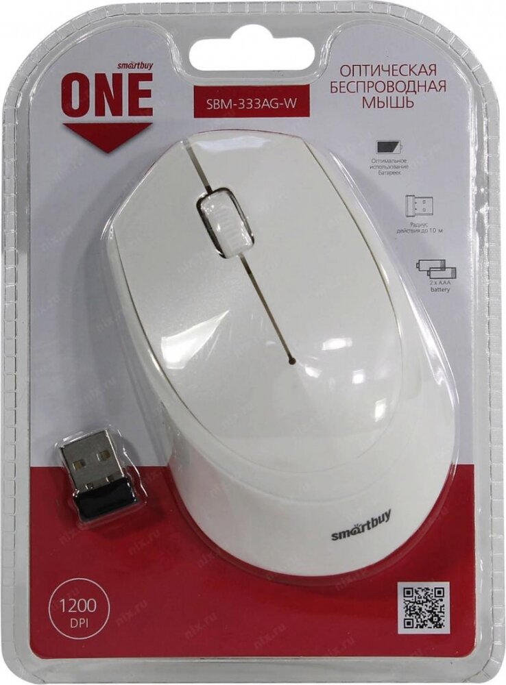 Купить Мышь компьютерная Smartbuy ONE 333AG-W WLS белая (SBM-333AG-W)/80 1801632