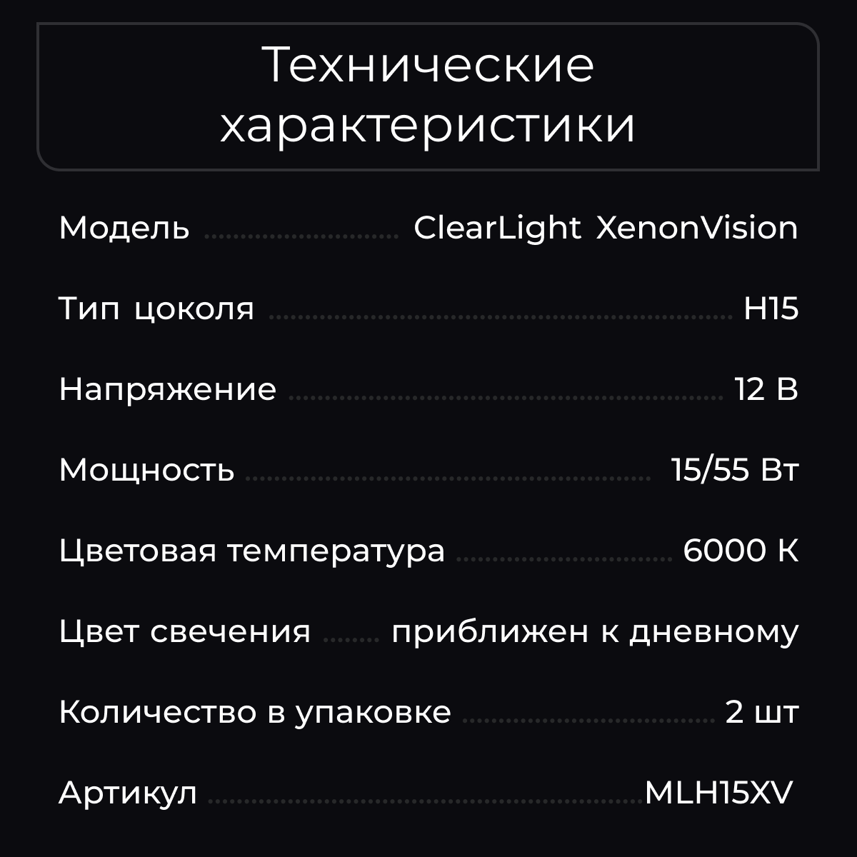 К-Т Ламп H15 Xenonvision 12V-15/55W Галоген (2 Шт.) ClearLight арт. MLH15XV