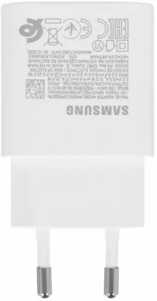 Блок питания Samsung 25W PD Power Adapter USB-C/ Сетевой адаптер Самсунг 25вт ЮЗБ тайп -с, белый, модель EP-TA800