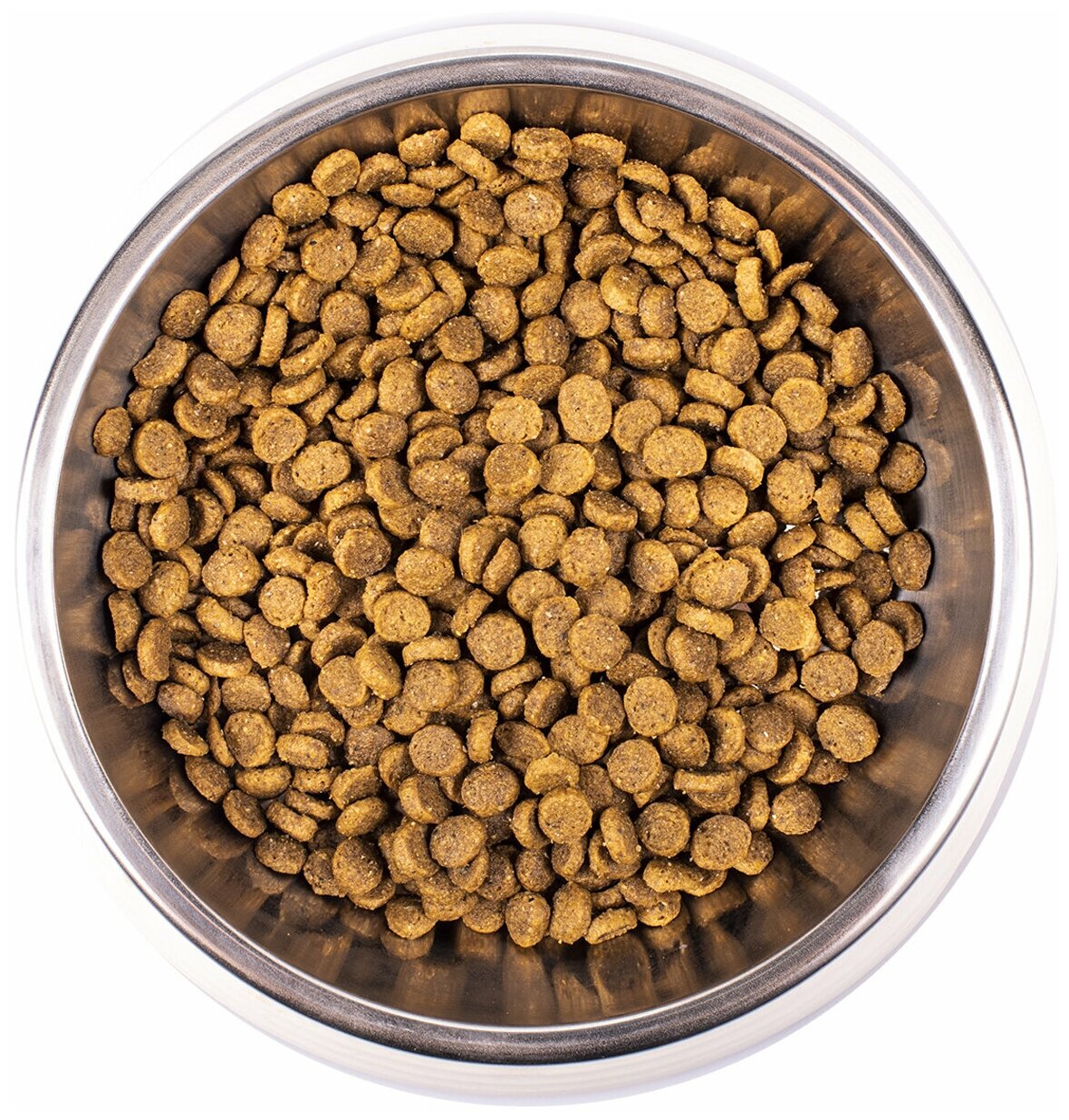 | Состав | курица (дегидрированная 26%, свежая 10%), рис, животный жир (куриный жир 99,6%, консервированный с помощью натуральных антиоксидантов), кукуруза, гидролизованный животный белок, сухая свекольная пульпа, кукурузная глютеновая мука, яичный порошок (с высоким содержанием полноценного белка), рыба (дегидрированный лосось), рыбий жир (масло лосося), пивные дрожжи (источник МОС и витамина В12), нерастворимые волокна гороха, таурин, КОС (ксилоолигосахариды 3 г/кг), гидролизованные дрожжи (МОС), юкка Шидигера, шиповник |