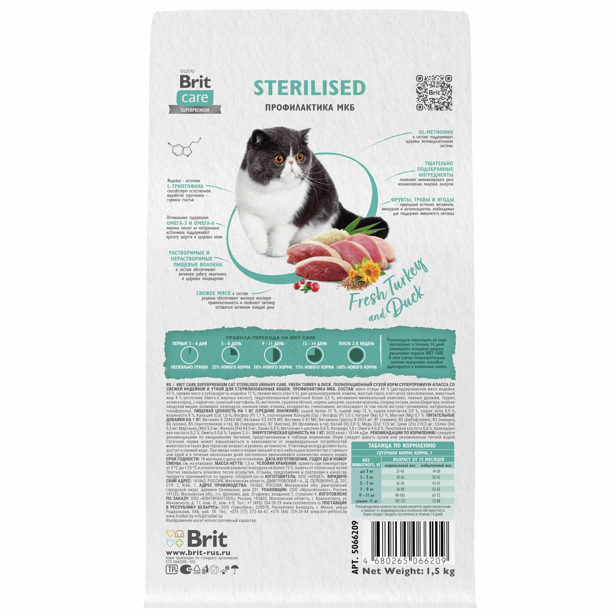 BRIT CARE, Сухой корм с индейкой и уткой для стерилизованных кошек "Cat Sterilised Urinary Care", 1.5 кг, 5066209
