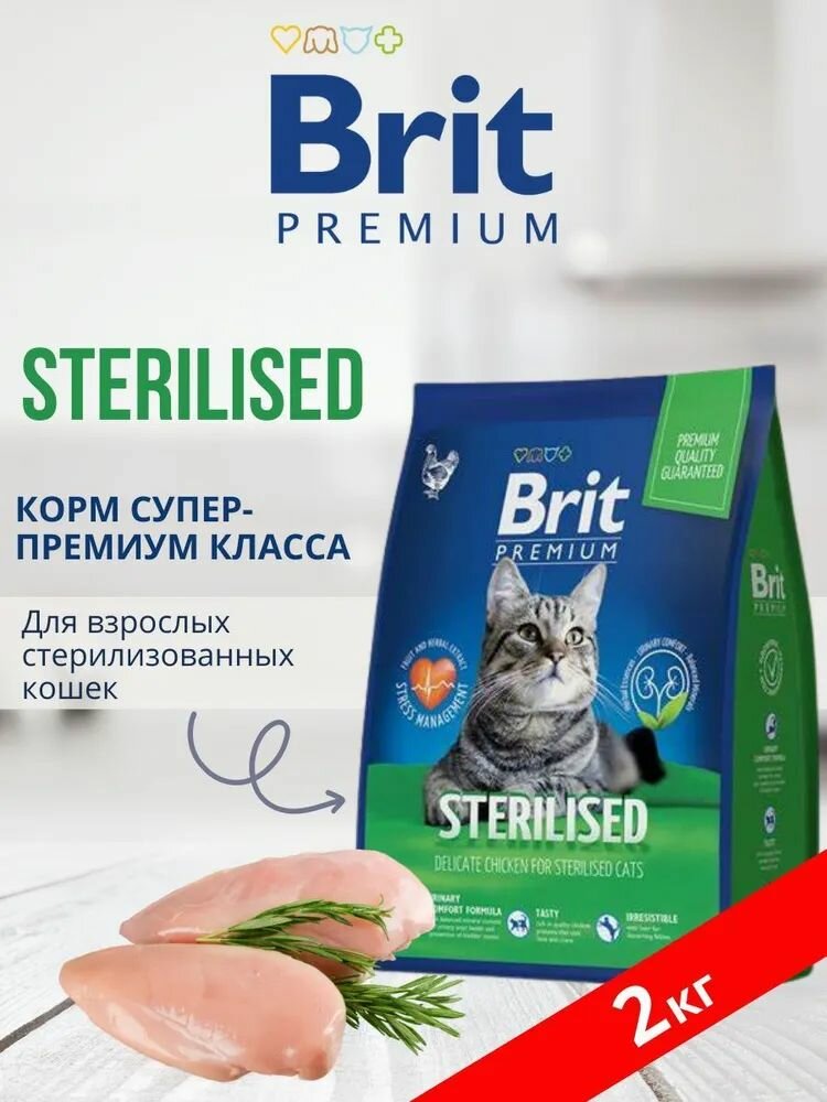 Купить Brit Premium корм для взрослых стерилизованных кошек, с курицей 2 кг