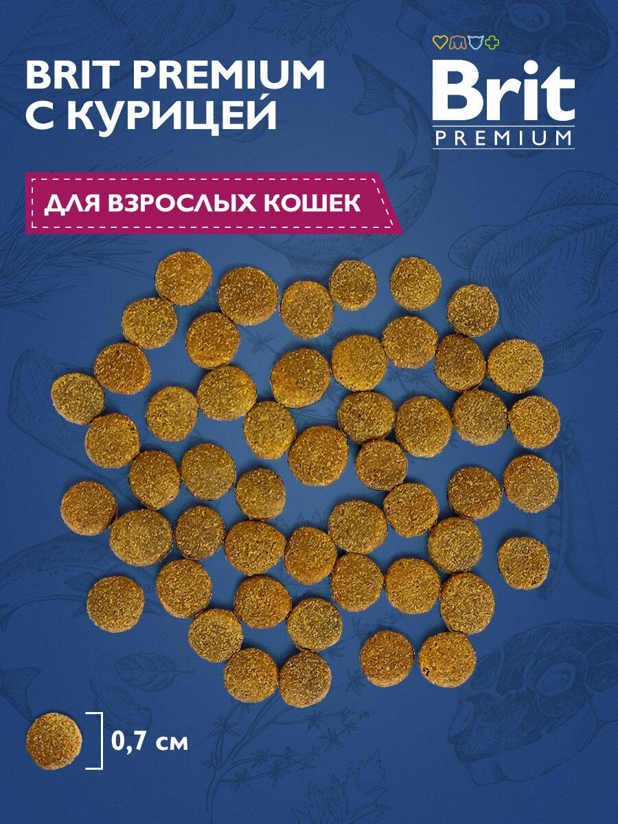 Сухой корм для кошек Брит Premium Cat Adult Chicken для кошек 2кг курица россия