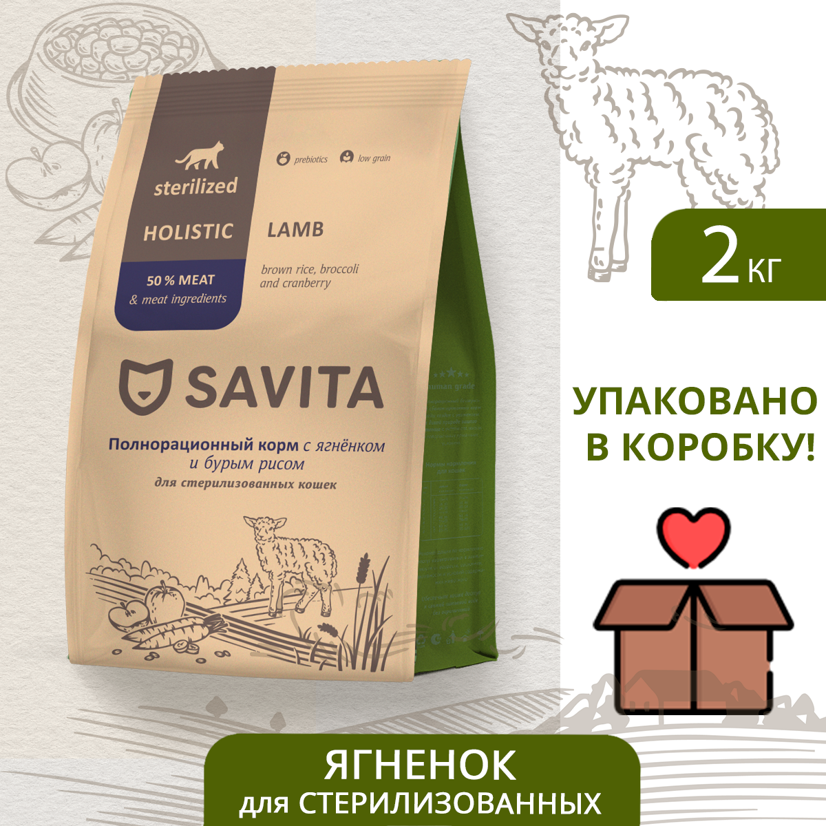 Купить SAVITA для стерилизованных кошек с ягненком и бурым рисом (2 кг)