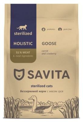 SAVITA Беззерновой корм для стерилизованных кошек с мясом гуся, 2 кг