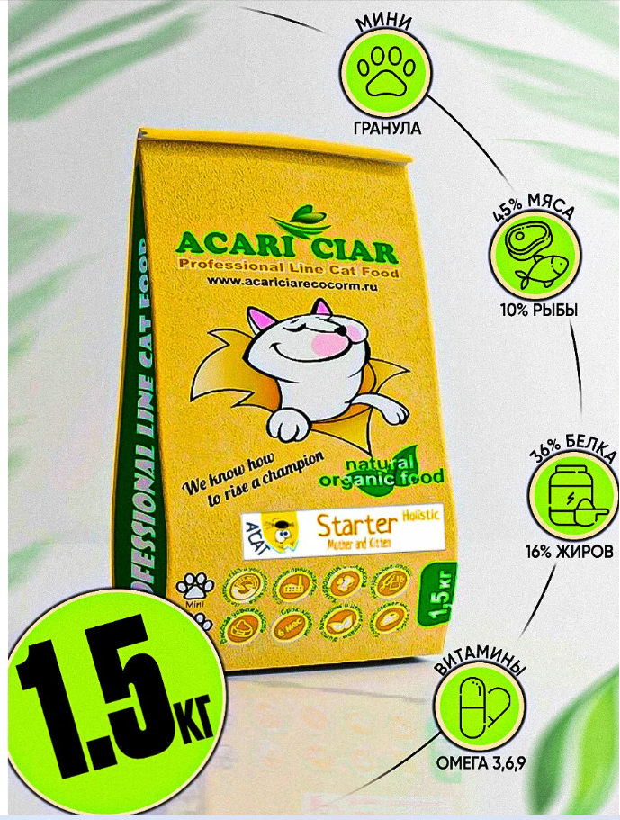 СохранитьСухой корм Acari Ciar A'cat Starter Holistic 1.5 кг для котят и кошек в период беременности и лактации интересное: