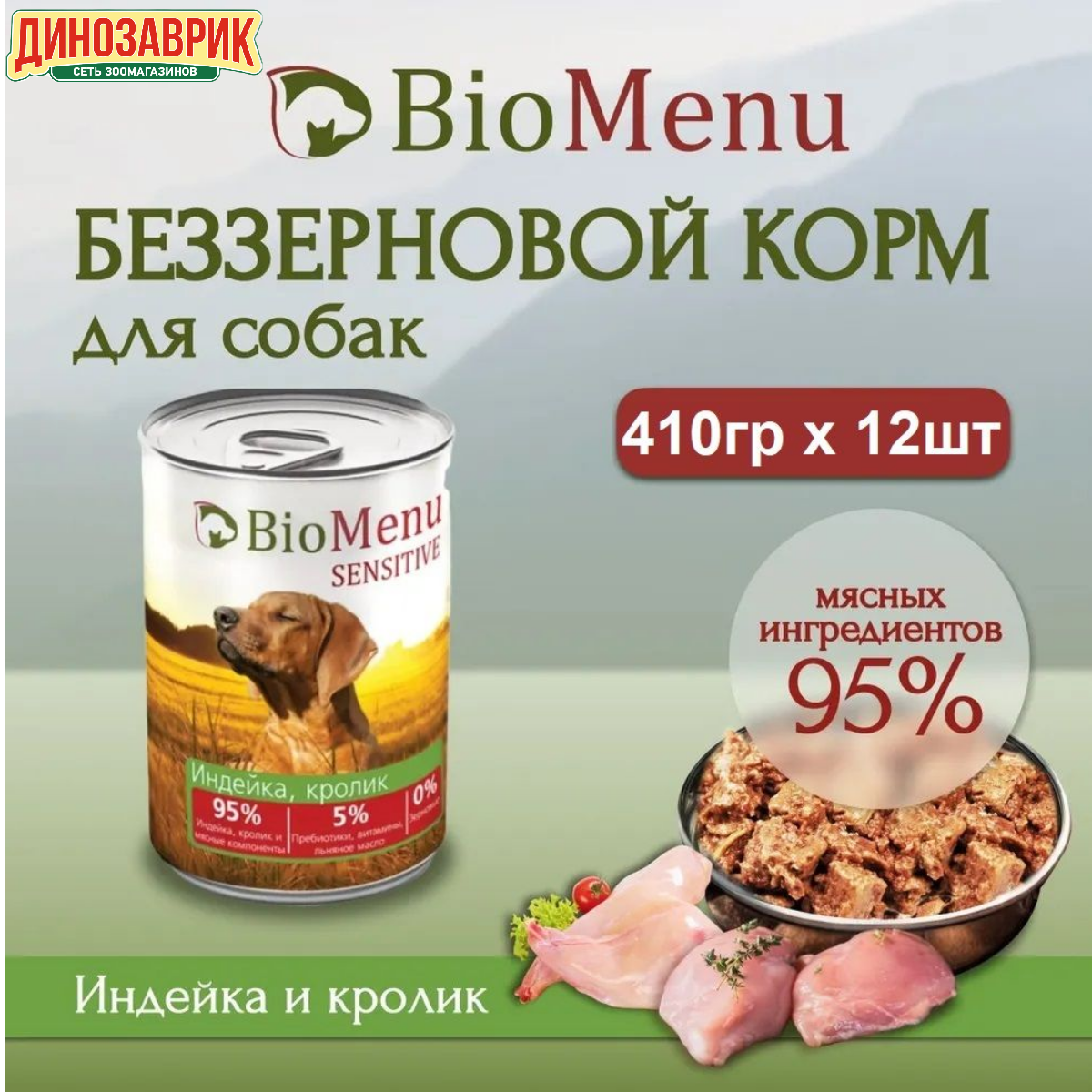BioMenu SENSITIVE Консервы для собак Индейка/Кролик 95%-мясо 410г х 12 шт