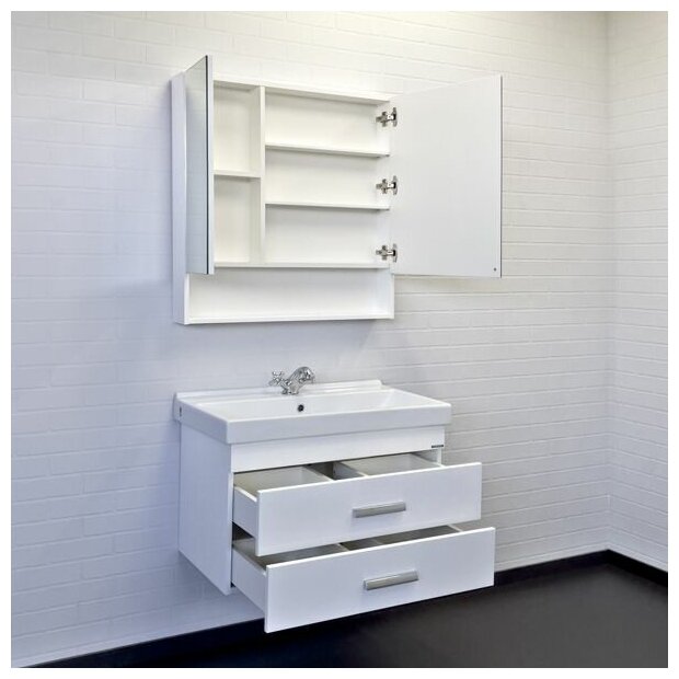 Тумба-умывальник "Никосия-80П" белый глянец с рак. Fest 80 F01