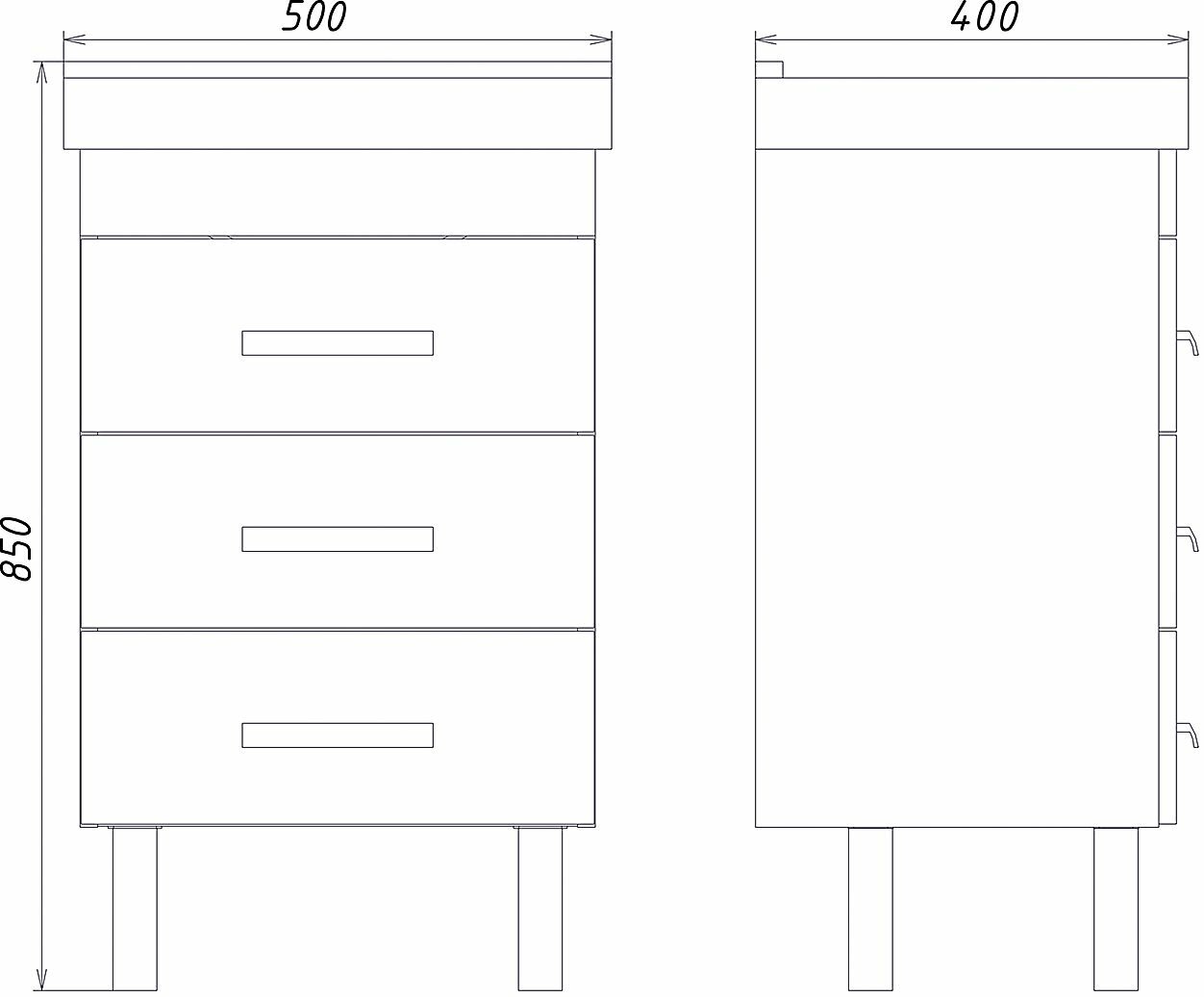 | Комплектация | 2 ящика, 1 полка, 2 ручки для ящиков, раковина Quadro 90 |