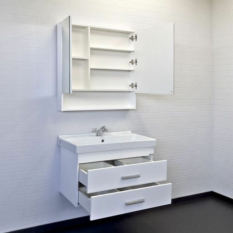 Тумба-умывальник "Никосия-80П" белый глянец с рак. Fest 80 F01