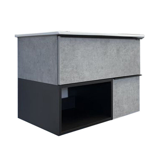 Тумба-умывальник "Эдинбург-75" бетон светлый с черной столешницей, с раковиной COMFORTY T-Y9378