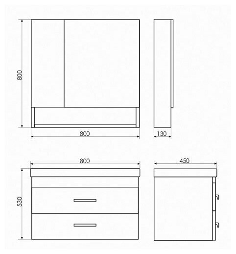 | Комплектация | 2 ящика, 1 полка, 2 ручки для ящиков, раковина Quadro 90 |