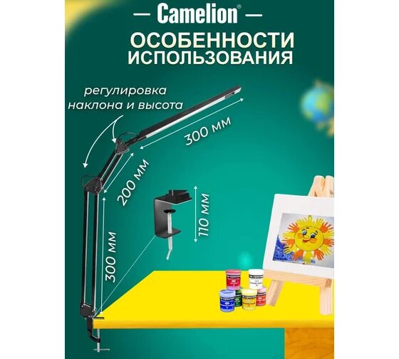 СохранитьСветильник настольный Camelion LED, 8 W, на струбцине, 2 уровня яркости, черный интересное:
