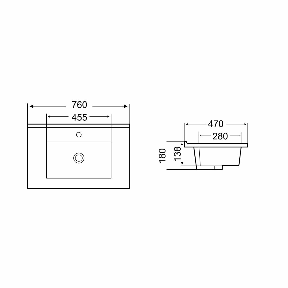 раковина Weltwasser WW SK DEILBACH 7506- 75 MT- BL Раковина врезная (матовая черная) 760х470х180 WeltWasser