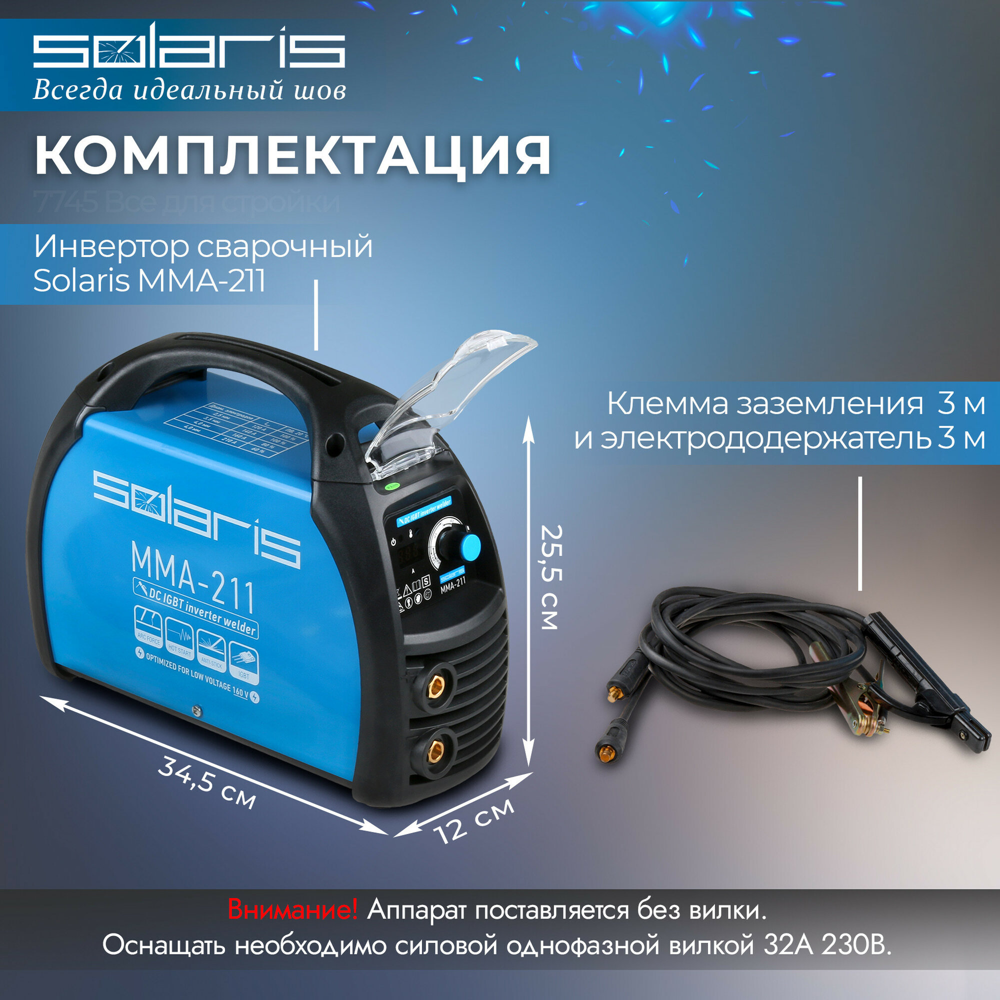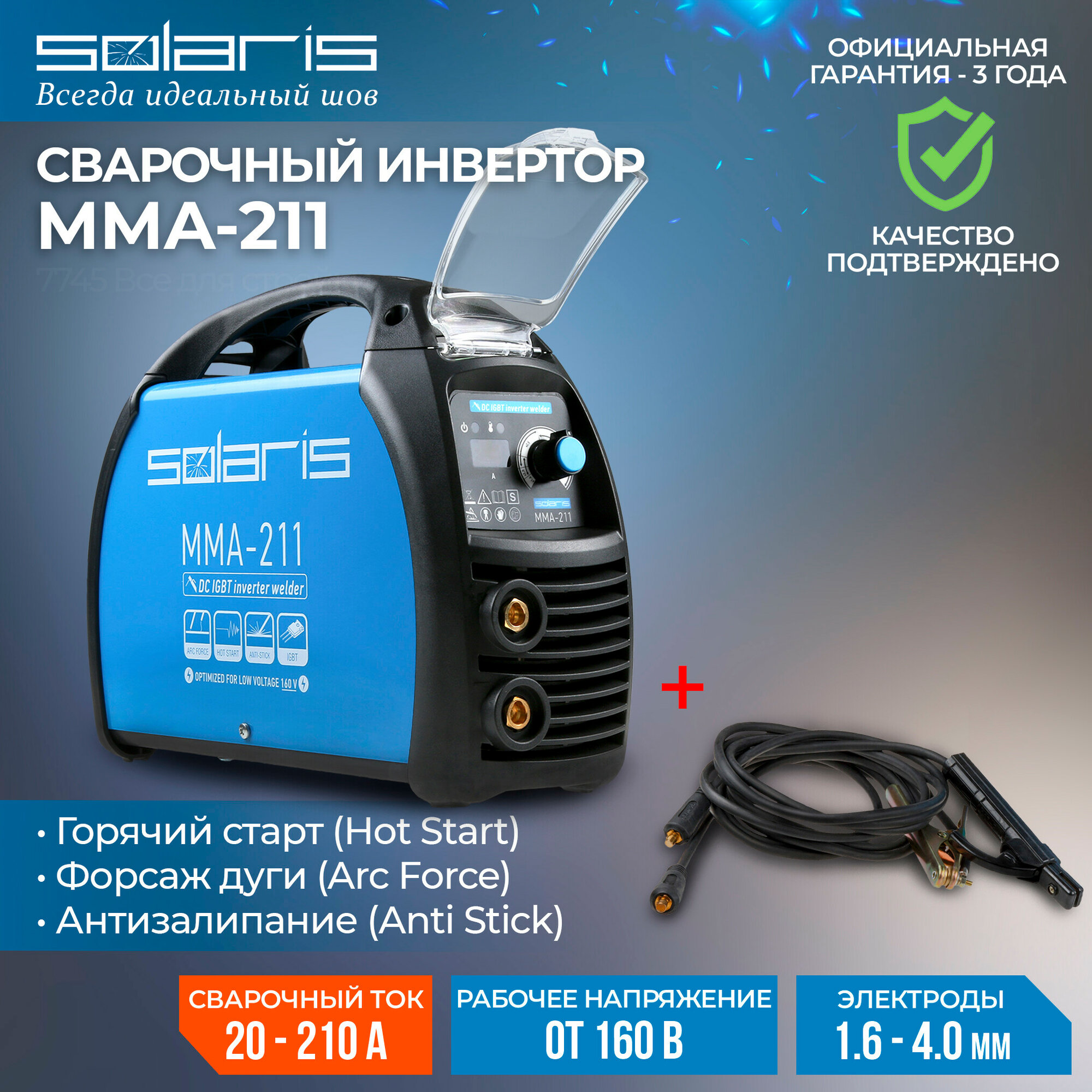 Инвертор сварочный SOLARIS MMA-211230В; 20-210 А; 70В; электроды диам. 1.6-4.0 мм интересное: