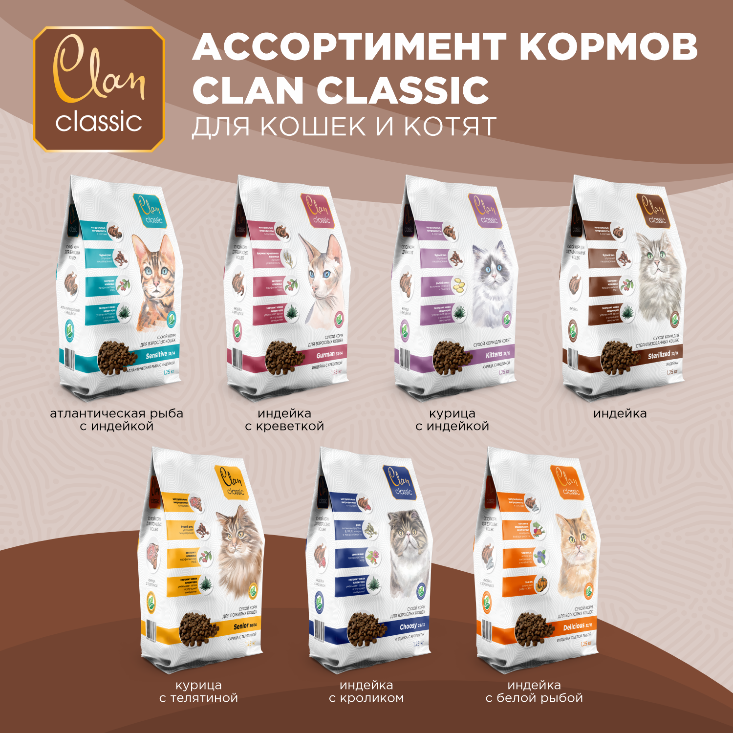 CLAN CLASSIC STERILIZED 30/14 для взрослых кастрированных котов и стерилизованных кошек с индейкой (1,25 кг)
