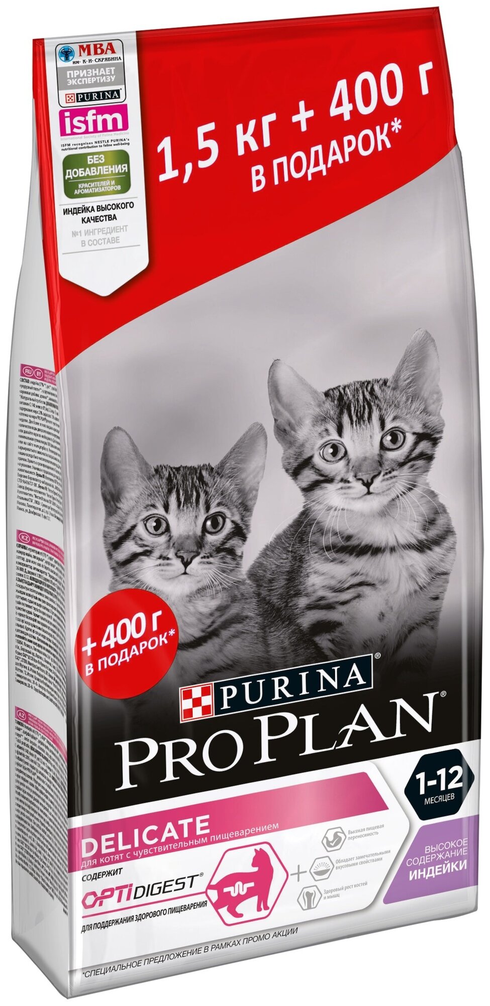 Купить Сухой корм Pro Plan для котят с чувствительным пищеварением, с высоким содержанием индейки, 1,5 кг + 400 г