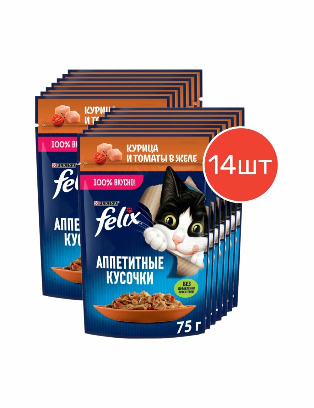 FELIX аппетитные кусочки для взрослых кошек с курицей и томатами в желе (75 гр х 26 шт)