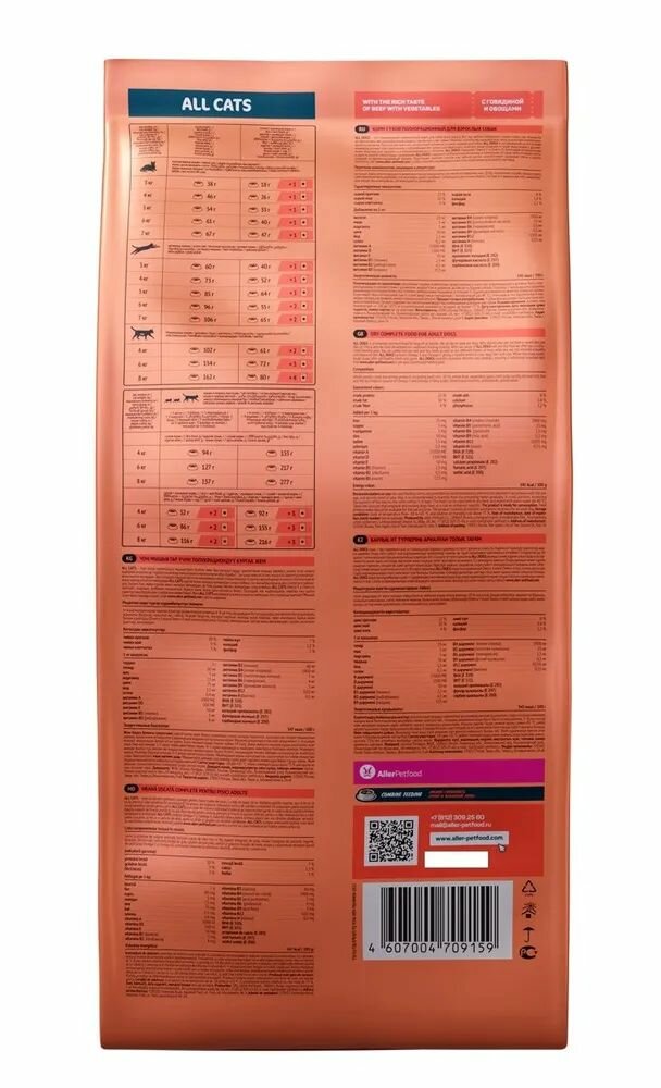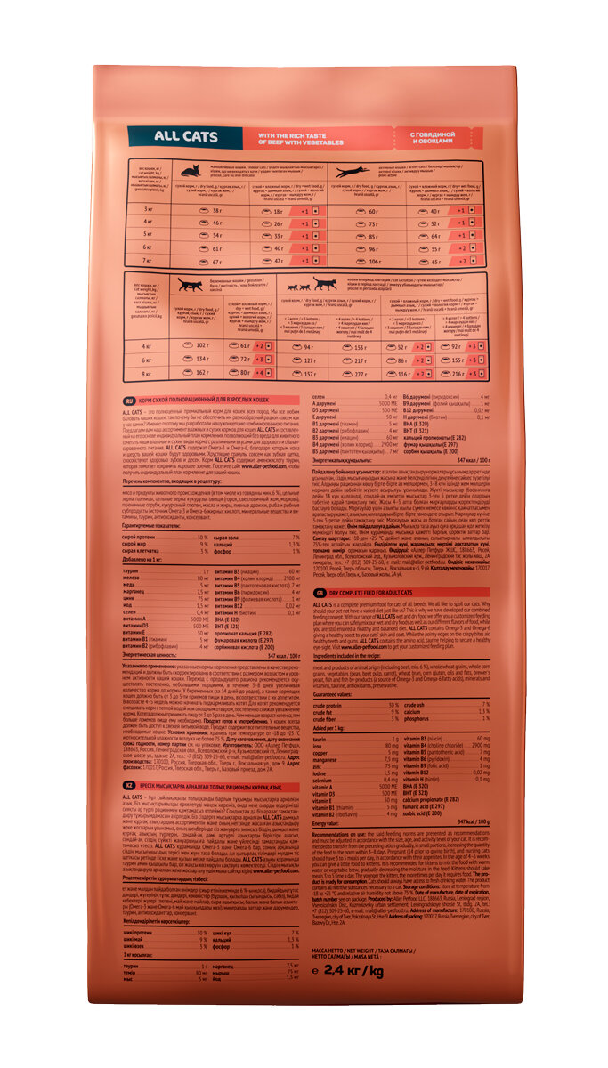 All Cats Корм сухой для взрослых кошек с говядиной и овощами 42 AL 918 2,4 кг 52807 (2 шт)