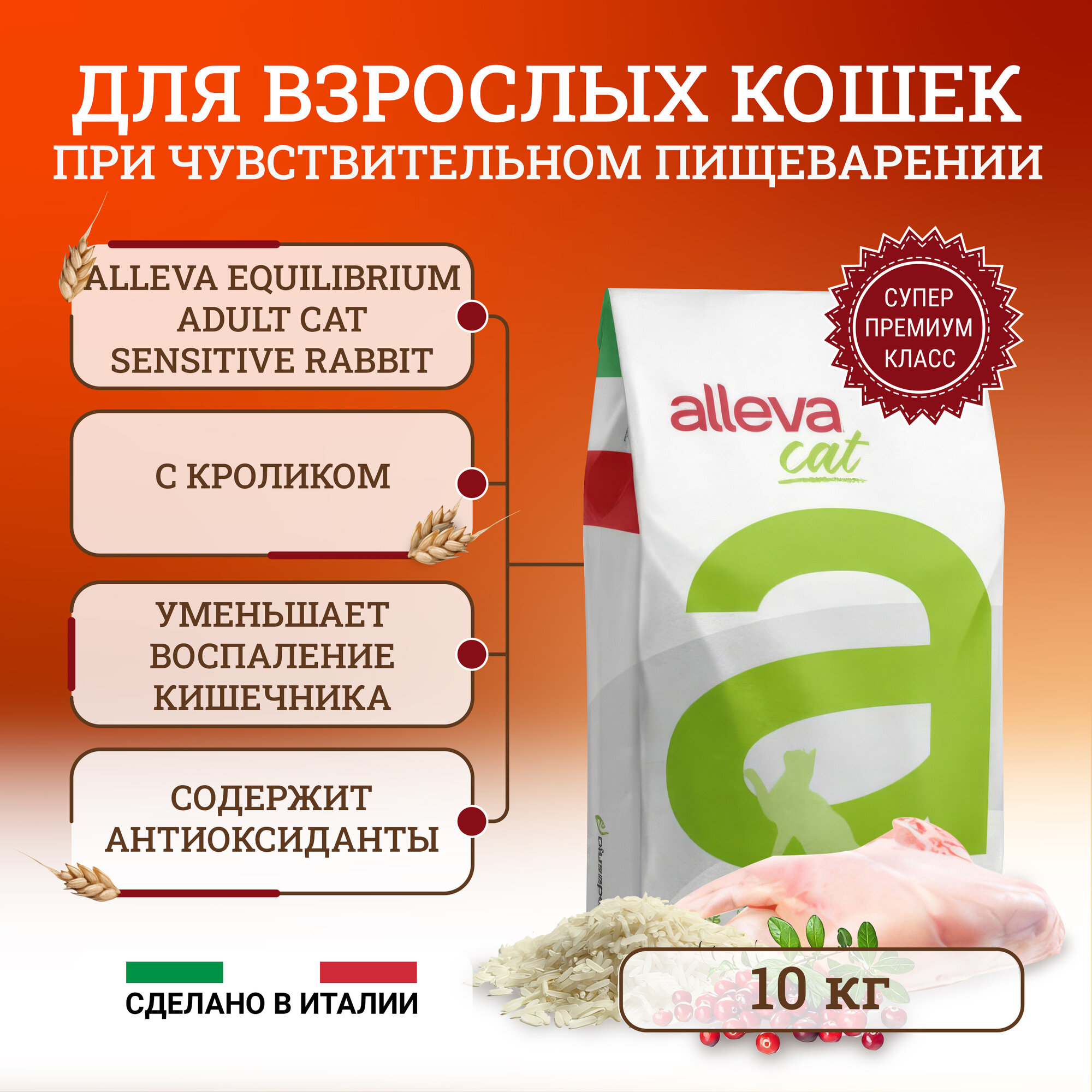 Купить ALLEVA EQUILIBRIUM Корм для взрослых кошек Сенситив с кроликом 10 кг