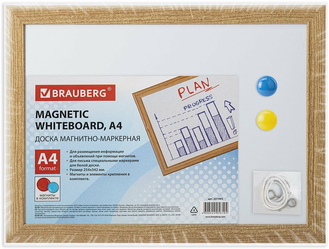 Доска магнитно-маркерная А4, 254х342 мм, гарантия 10 ЛЕТ, BRAUBERG, 231993 4606224056104
