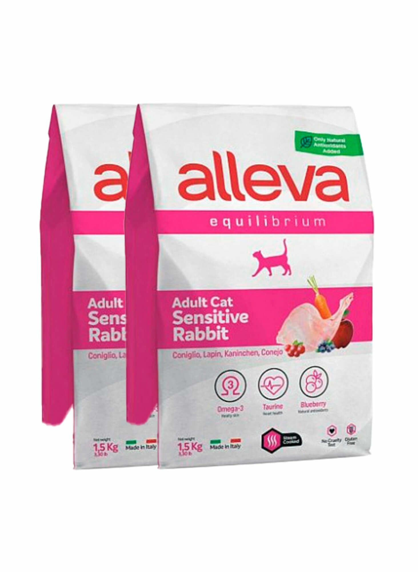 Купить ALLEVA Полнорационный корм SENSITIVE для взрослых кошек с кроликом. 1,5 кг. х 2 шт.