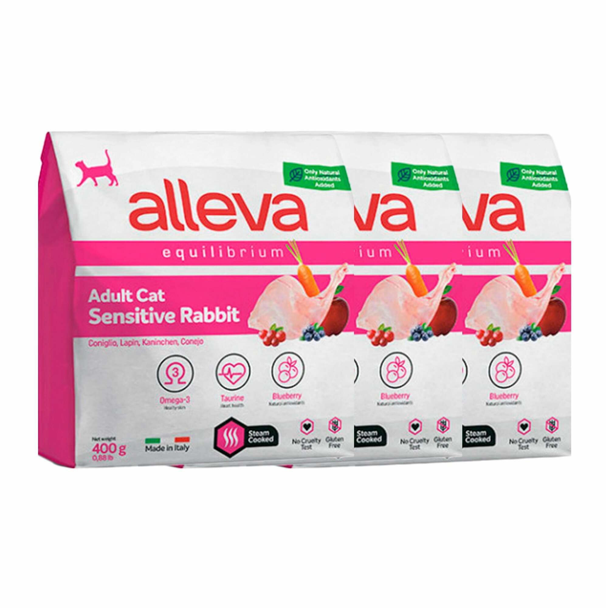Купить ALLEVA Полнорационный корм SENSITIVE для взрослых кошек с кроликом. 0,4 кг. х 3 шт.