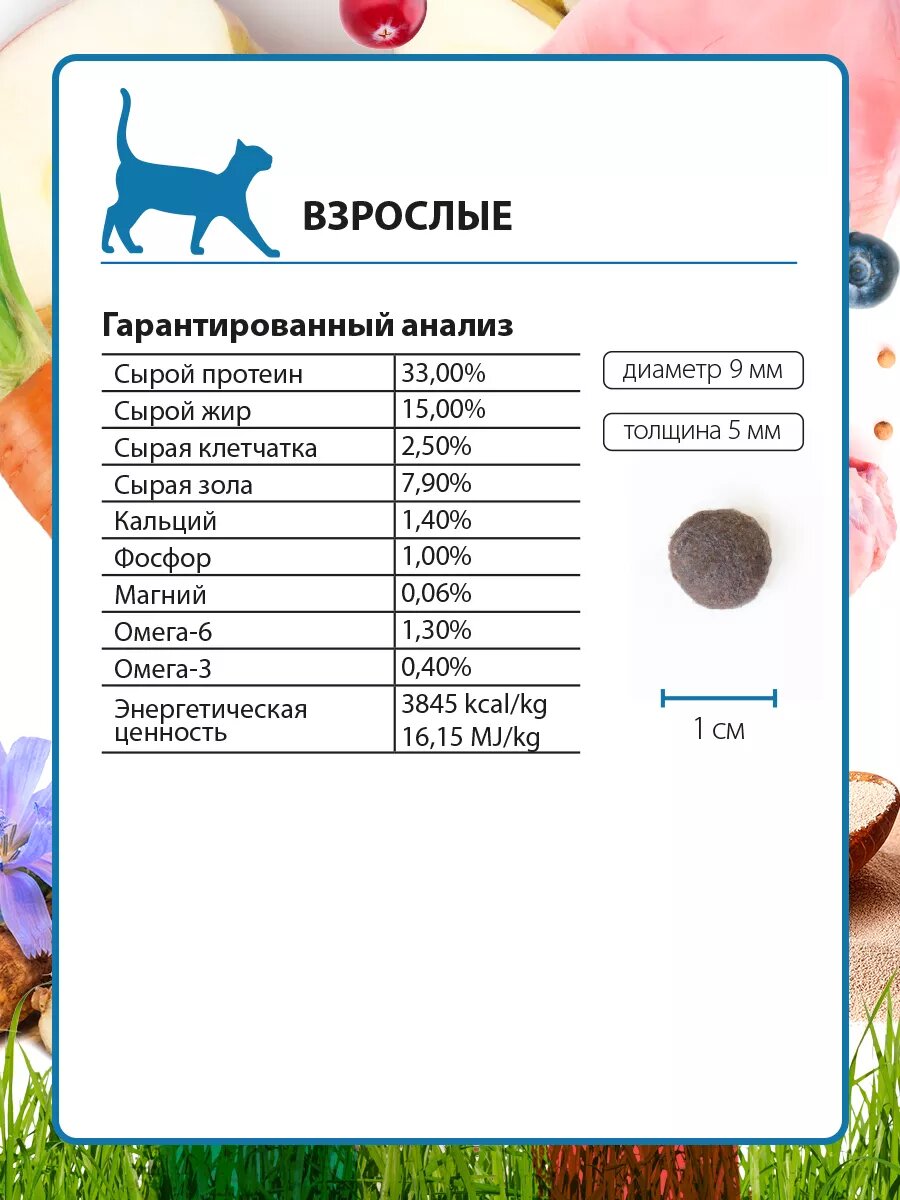 | Особые потребности | гипоаллергенный / для живущих в помещении / для здоровья кожи и блеска шерсти / при чувствительном пищеварении / профилактика зубного камня |